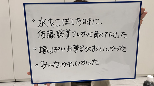 「①水をこぼした時に、佐藤聡美さんが心配して下さった